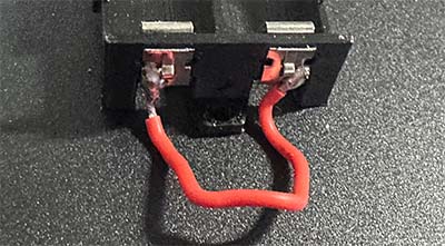 Then take 2 of the battery buckles and solder a short piece of wire between them. Clip them onto one end of the battery holder.