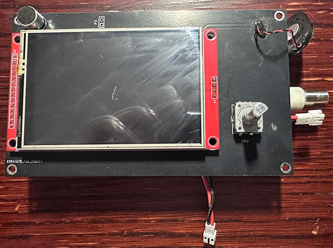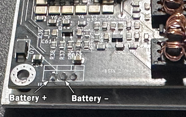 Now we can start reassembling everything. Start with the upper plate, then the left plate. On the right plate, hook up the fan connector and carefully work the excess wire into the zBitx between the two circuit boards. Insert the right plate fully and snug down the nut on the BNC connector. Attach the battery connector to the lead coming out of the bottom of the zBitx. Stow the excess wire inside the bottom extension by working it into the hole. Situate the bottom plate in it’s place and add the face plate, securing everything with the original screws and nuts.